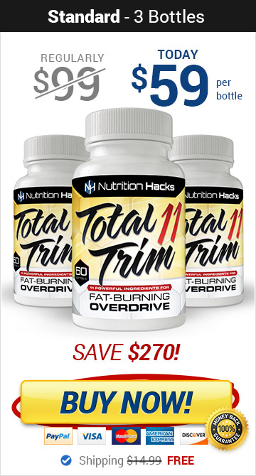 That’s why, even though it is expensive and time-consuming to harvest the pure ingredients inside Total Trim 11, Nutrition Hacks uses their patented-pending experience to be able to keep costs as low as possible for you, making one months’ supply as low as $49.